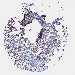 Antibody staining in the annotated cell types in the current human tissue is reported as not detected, low, medium, or high, based on conventional immunohistochemistry profiling in selected tissues. This score is based on the combination of the staining intensity and fraction of stained cells.