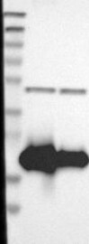 A Western blot analysis is performed on a panel of human tissues and cell lines to evaluate antibody specificity. For antibodies with unreliable result a revalidation using an over-expression lysate is performed.