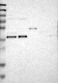 A Western blot analysis is performed on a panel of human tissues and cell lines to evaluate antibody specificity. For antibodies with unreliable result a revalidation using an over-expression lysate is performed.