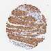 Antibody staining in the annotated cell types in the current human tissue is reported as not detected, low, medium, or high, based on conventional immunohistochemistry profiling in selected tissues. This score is based on the combination of the staining intensity and fraction of stained cells.