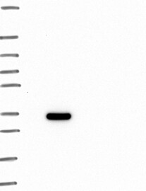 A Western blot analysis is performed on a panel of human tissues and cell lines to evaluate antibody specificity. For antibodies with unreliable result a revalidation using an over-expression lysate is performed.