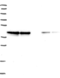 A Western blot analysis is performed on a panel of human tissues and cell lines to evaluate antibody specificity. For antibodies with unreliable result a revalidation using an over-expression lysate is performed.