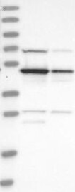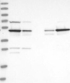 A Western blot analysis is performed on a panel of human tissues and cell lines to evaluate antibody specificity. For antibodies with unreliable result a revalidation using an over-expression lysate is performed.