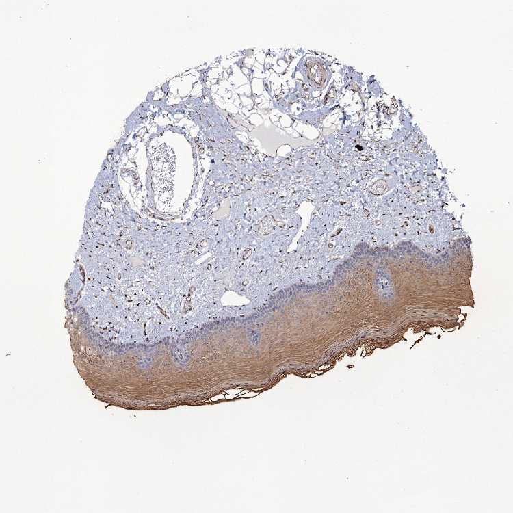 Antibody staining in the annotated cell types in the current human tissue is reported as not detected, low, medium, or high, based on conventional immunohistochemistry profiling in selected tissues. This score is based on the combination of the staining intensity and fraction of stained cells.