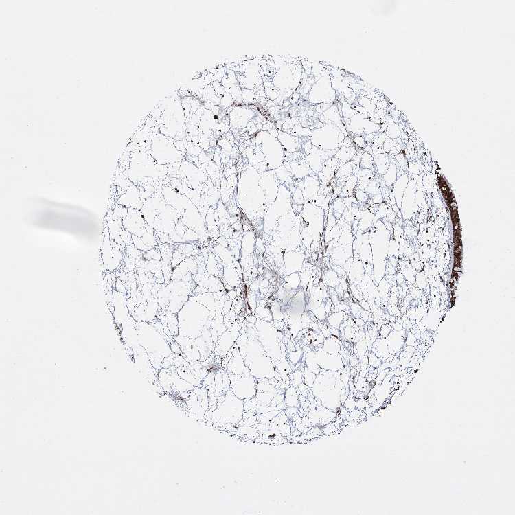Antibody staining in the annotated cell types in the current human tissue is reported as not detected, low, medium, or high, based on conventional immunohistochemistry profiling in selected tissues. This score is based on the combination of the staining intensity and fraction of stained cells.