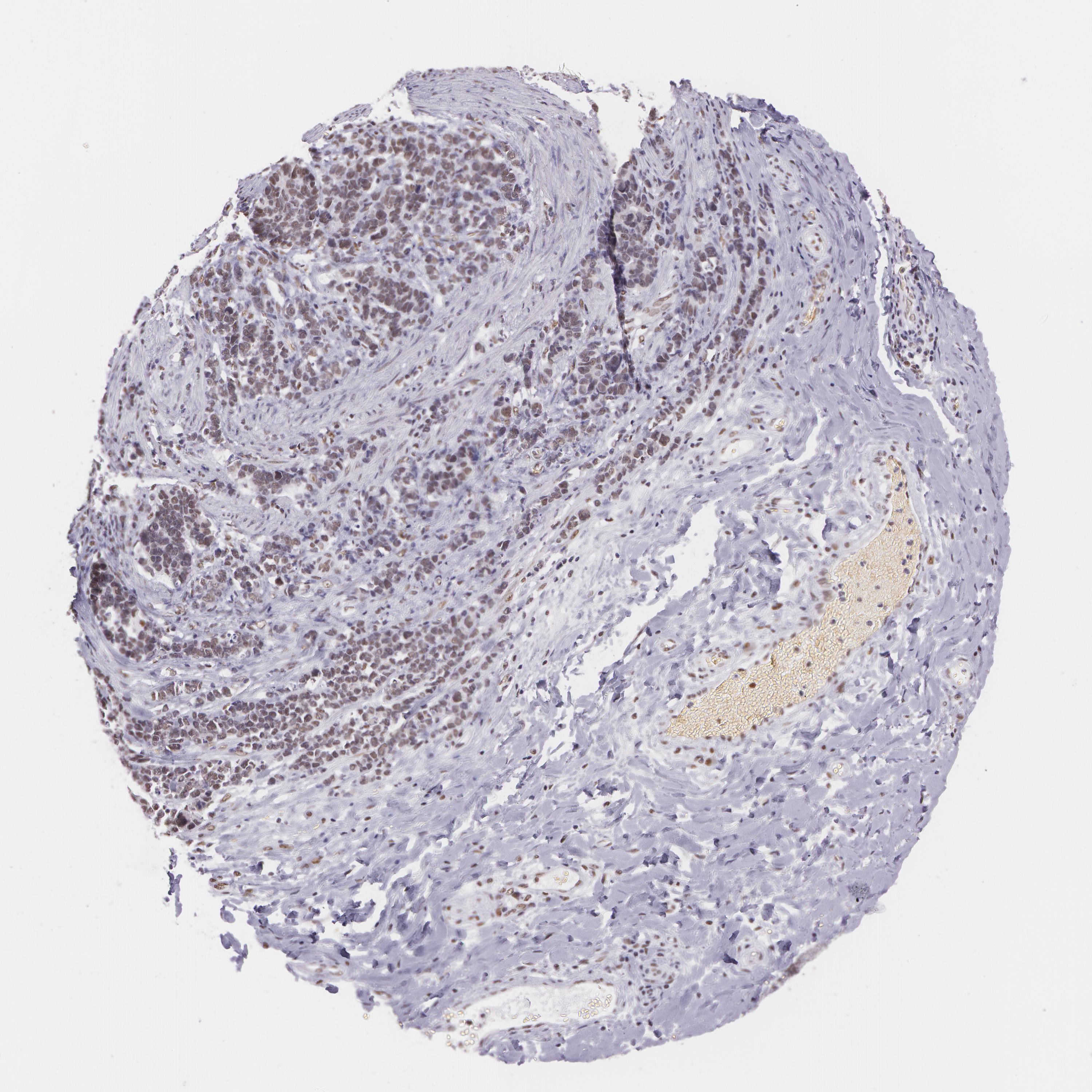 Antibody staining in the annotated cell types in the current human tissue is reported as not detected, low, medium, or high, based on conventional immunohistochemistry profiling in selected tissues. This score is based on the combination of the staining intensity and fraction of stained cells.
