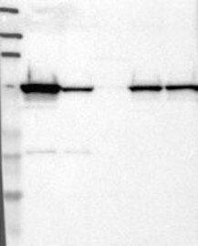 A Western blot analysis is performed on a panel of human tissues and cell lines to evaluate antibody specificity. For antibodies with unreliable result a revalidation using an over-expression lysate is performed.