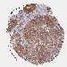 Antibody staining in the annotated cell types in the current human tissue is reported as not detected, low, medium, or high, based on conventional immunohistochemistry profiling in selected tissues. This score is based on the combination of the staining intensity and fraction of stained cells.