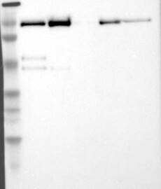 A Western blot analysis is performed on a panel of human tissues and cell lines to evaluate antibody specificity. For antibodies with unreliable result a revalidation using an over-expression lysate is performed.