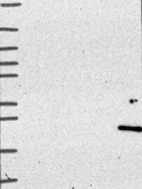 A Western blot analysis is performed on a panel of human tissues and cell lines to evaluate antibody specificity. For antibodies with unreliable result a revalidation using an over-expression lysate is performed.