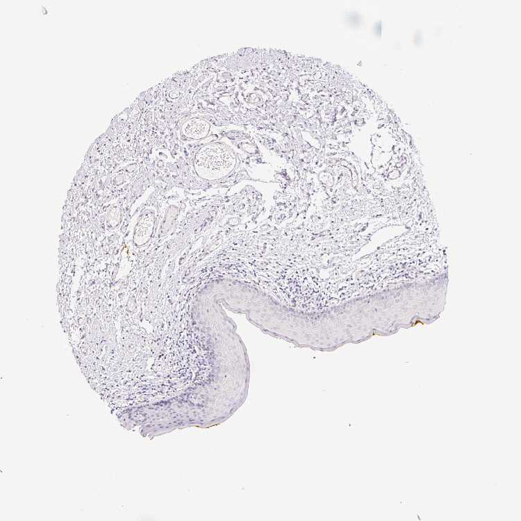 Antibody staining in the annotated cell types in the current human tissue is reported as not detected, low, medium, or high, based on conventional immunohistochemistry profiling in selected tissues. This score is based on the combination of the staining intensity and fraction of stained cells.