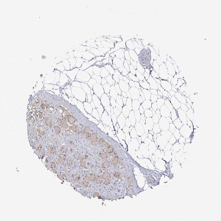 Antibody staining in the annotated cell types in the current human tissue is reported as not detected, low, medium, or high, based on conventional immunohistochemistry profiling in selected tissues. This score is based on the combination of the staining intensity and fraction of stained cells.