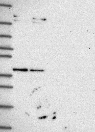 Antibody band pattern is confirmed by antibody HPA048843. Analysis performed using a standard panel of samples.