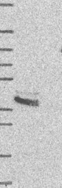A Western blot analysis is performed on a panel of human tissues and cell lines to evaluate antibody specificity. For antibodies with unreliable result a revalidation using an over-expression lysate is performed.