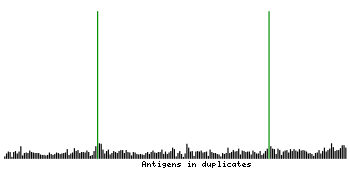 At the top of the view, the position of the antigen (identified by the corresponding HPA identifier) is shown as a green bar. A yellow triangle on the bar indicates a <100% sequence identity to the protein target.
