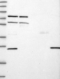 A Western blot analysis is performed on a panel of human tissues and cell lines to evaluate antibody specificity. For antibodies with unreliable result a revalidation using an over-expression lysate is performed.