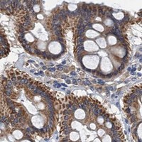 Enhanced validation is performed using either siRNA knockdown, tagged GFP cell lines or independent antibodies. For the siRNA validation the decrease in antibody-based staining intensity upon target protein downregulation is evaluated. For the GFP validation the signal overlap between the antibody staining and the GFP-tagged protein is evaluated. For the independent antibodies validation the evaluation is based on comparison of the staining of two (or more) independent antibodies directed towards independent epitopes on the protein.
