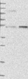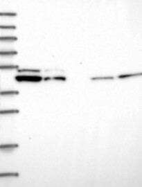 A Western blot analysis is performed on a panel of human tissues and cell lines to evaluate antibody specificity. For antibodies with unreliable result a revalidation using an over-expression lysate is performed.
