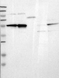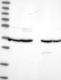 A Western blot analysis is performed on a panel of human tissues and cell lines to evaluate antibody specificity. For antibodies with unreliable result a revalidation using an over-expression lysate is performed.