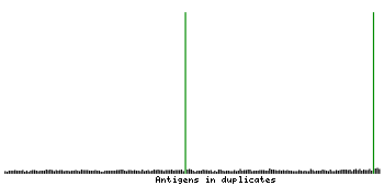 At the top of the view, the position of the antigen (identified by the corresponding HPA identifier) is shown as a green bar. A yellow triangle on the bar indicates a <100% sequence identity to the protein target.