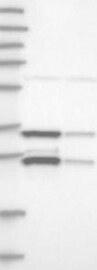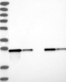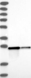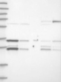 A Western blot analysis is performed on a panel of human tissues and cell lines to evaluate antibody specificity. For antibodies with unreliable result a revalidation using an over-expression lysate is performed.