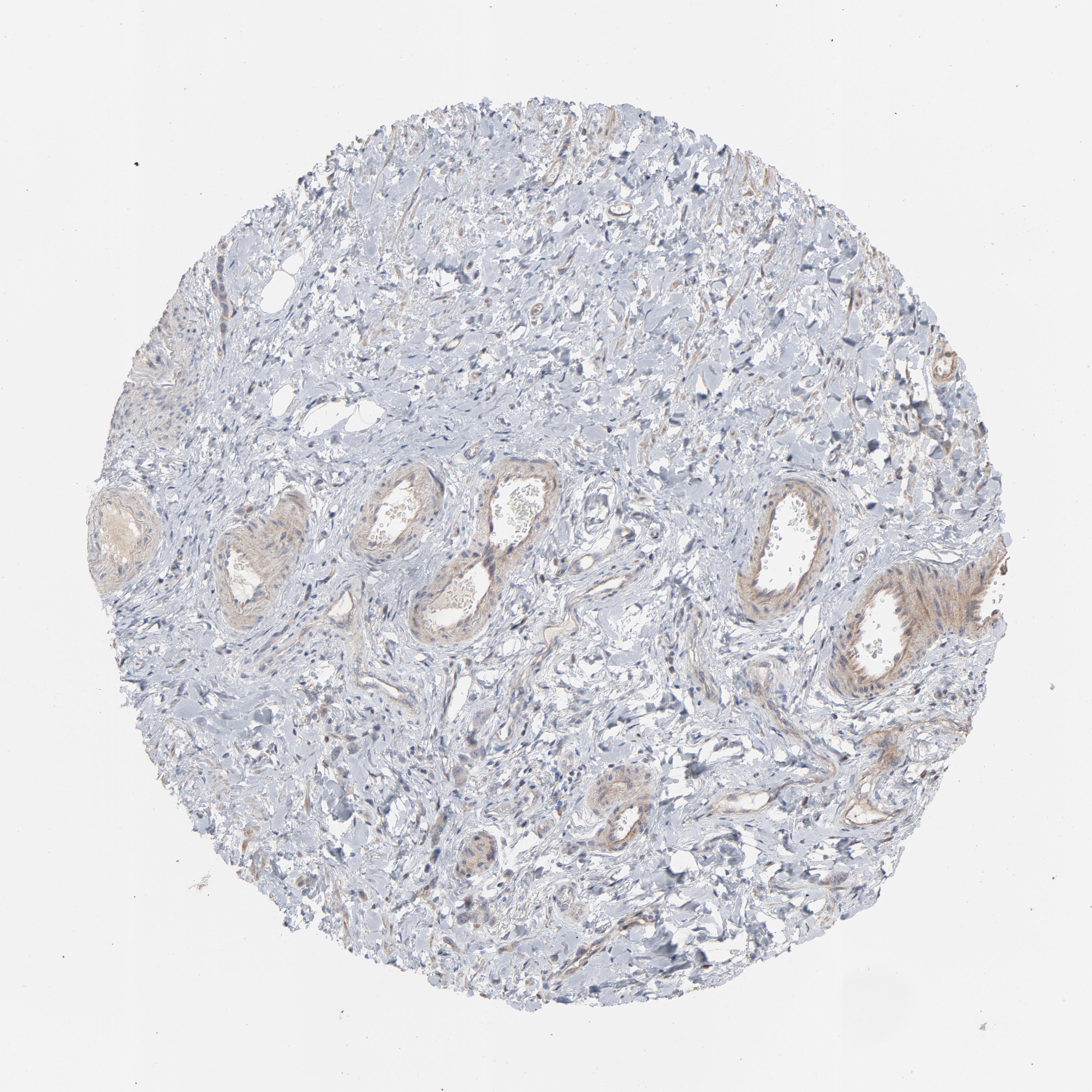 Antibody staining in the annotated cell types in the current human tissue is reported as not detected, low, medium, or high, based on conventional immunohistochemistry profiling in selected tissues. This score is based on the combination of the staining intensity and fraction of stained cells.