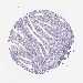 Antibody staining in the annotated cell types in the current human tissue is reported as not detected, low, medium, or high, based on conventional immunohistochemistry profiling in selected tissues. This score is based on the combination of the staining intensity and fraction of stained cells.