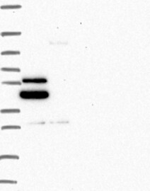 A Western blot analysis is performed on a panel of human tissues and cell lines to evaluate antibody specificity. For antibodies with unreliable result a revalidation using an over-expression lysate is performed.