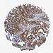 Antibody staining in the annotated cell types in the current human tissue is reported as not detected, low, medium, or high, based on conventional immunohistochemistry profiling in selected tissues. This score is based on the combination of the staining intensity and fraction of stained cells.