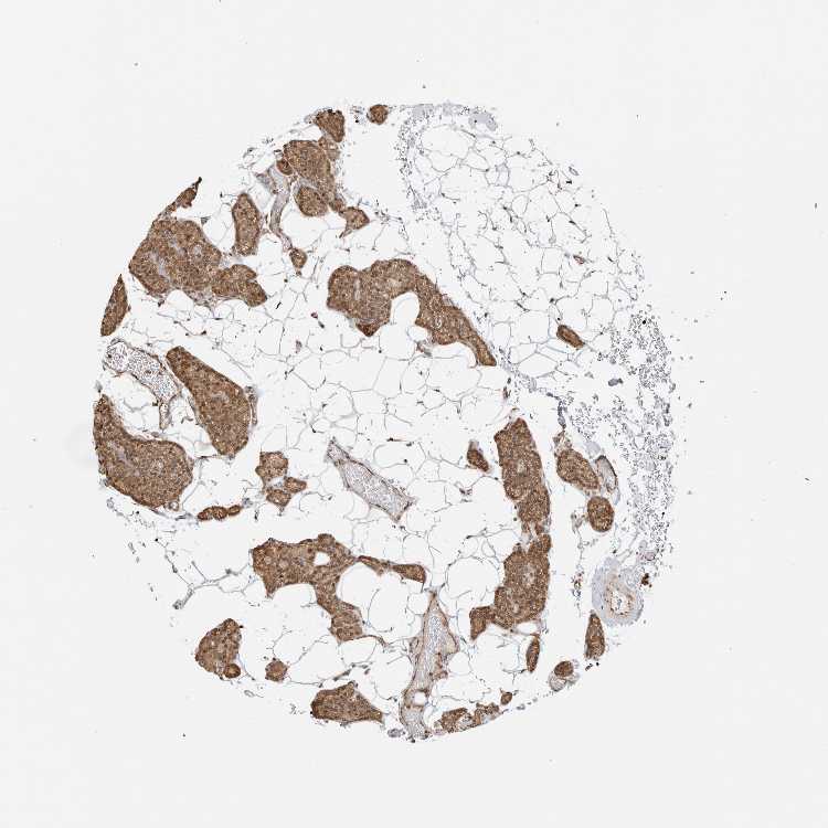 Antibody staining in the annotated cell types in the current human tissue is reported as not detected, low, medium, or high, based on conventional immunohistochemistry profiling in selected tissues. This score is based on the combination of the staining intensity and fraction of stained cells.