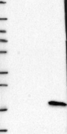 A Western blot analysis is performed on a panel of human tissues and cell lines to evaluate antibody specificity. For antibodies with unreliable result a revalidation using an over-expression lysate is performed.