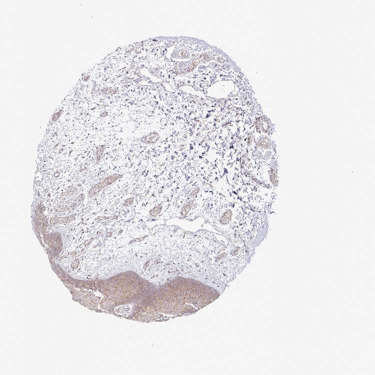 Antibody staining in the annotated cell types in the current human tissue is reported as not detected, low, medium, or high, based on conventional immunohistochemistry profiling in selected tissues. This score is based on the combination of the staining intensity and fraction of stained cells.
