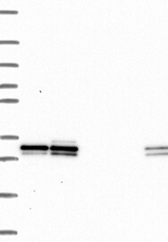 A Western blot analysis is performed on a panel of human tissues and cell lines to evaluate antibody specificity. For antibodies with unreliable result a revalidation using an over-expression lysate is performed.