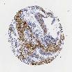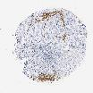 Antibody staining in the annotated cell types in the current human tissue is reported as not detected, low, medium, or high, based on conventional immunohistochemistry profiling in selected tissues. This score is based on the combination of the staining intensity and fraction of stained cells.
