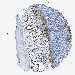 Antibody staining in the annotated cell types in the current human tissue is reported as not detected, low, medium, or high, based on conventional immunohistochemistry profiling in selected tissues. This score is based on the combination of the staining intensity and fraction of stained cells.