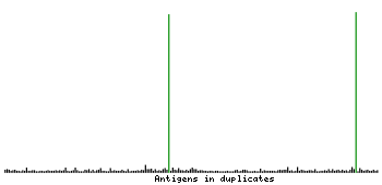 At the top of the view, the position of the antigen (identified by the corresponding HPA identifier) is shown as a green bar. A yellow triangle on the bar indicates a <100% sequence identity to the protein target.