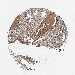 Antibody staining in the annotated cell types in the current human tissue is reported as not detected, low, medium, or high, based on conventional immunohistochemistry profiling in selected tissues. This score is based on the combination of the staining intensity and fraction of stained cells.