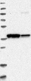 A Western blot analysis is performed on a panel of human tissues and cell lines to evaluate antibody specificity. For antibodies with unreliable result a revalidation using an over-expression lysate is performed.