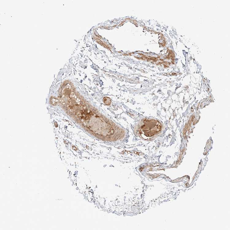 Antibody staining in the annotated cell types in the current human tissue is reported as not detected, low, medium, or high, based on conventional immunohistochemistry profiling in selected tissues. This score is based on the combination of the staining intensity and fraction of stained cells.