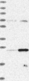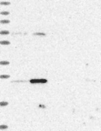 A Western blot analysis is performed on a panel of human tissues and cell lines to evaluate antibody specificity. For antibodies with unreliable result a revalidation using an over-expression lysate is performed.