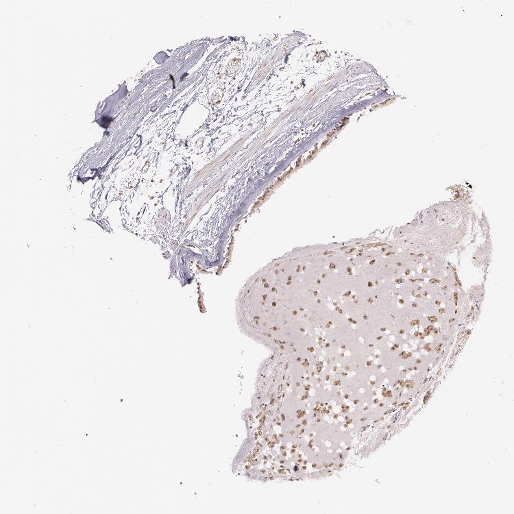 Antibody staining in the annotated cell types in the current human tissue is reported as not detected, low, medium, or high, based on conventional immunohistochemistry profiling in selected tissues. This score is based on the combination of the staining intensity and fraction of stained cells.