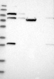 A Western blot analysis is performed on a panel of human tissues and cell lines to evaluate antibody specificity. For antibodies with unreliable result a revalidation using an over-expression lysate is performed.
