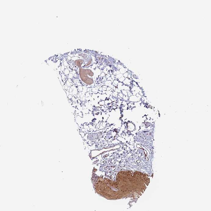 Antibody staining in the annotated cell types in the current human tissue is reported as not detected, low, medium, or high, based on conventional immunohistochemistry profiling in selected tissues. This score is based on the combination of the staining intensity and fraction of stained cells.