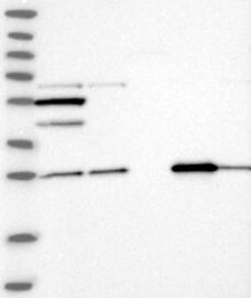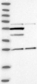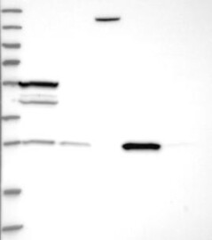 A Western blot analysis is performed on a panel of human tissues and cell lines to evaluate antibody specificity. For antibodies with unreliable result a revalidation using an over-expression lysate is performed.