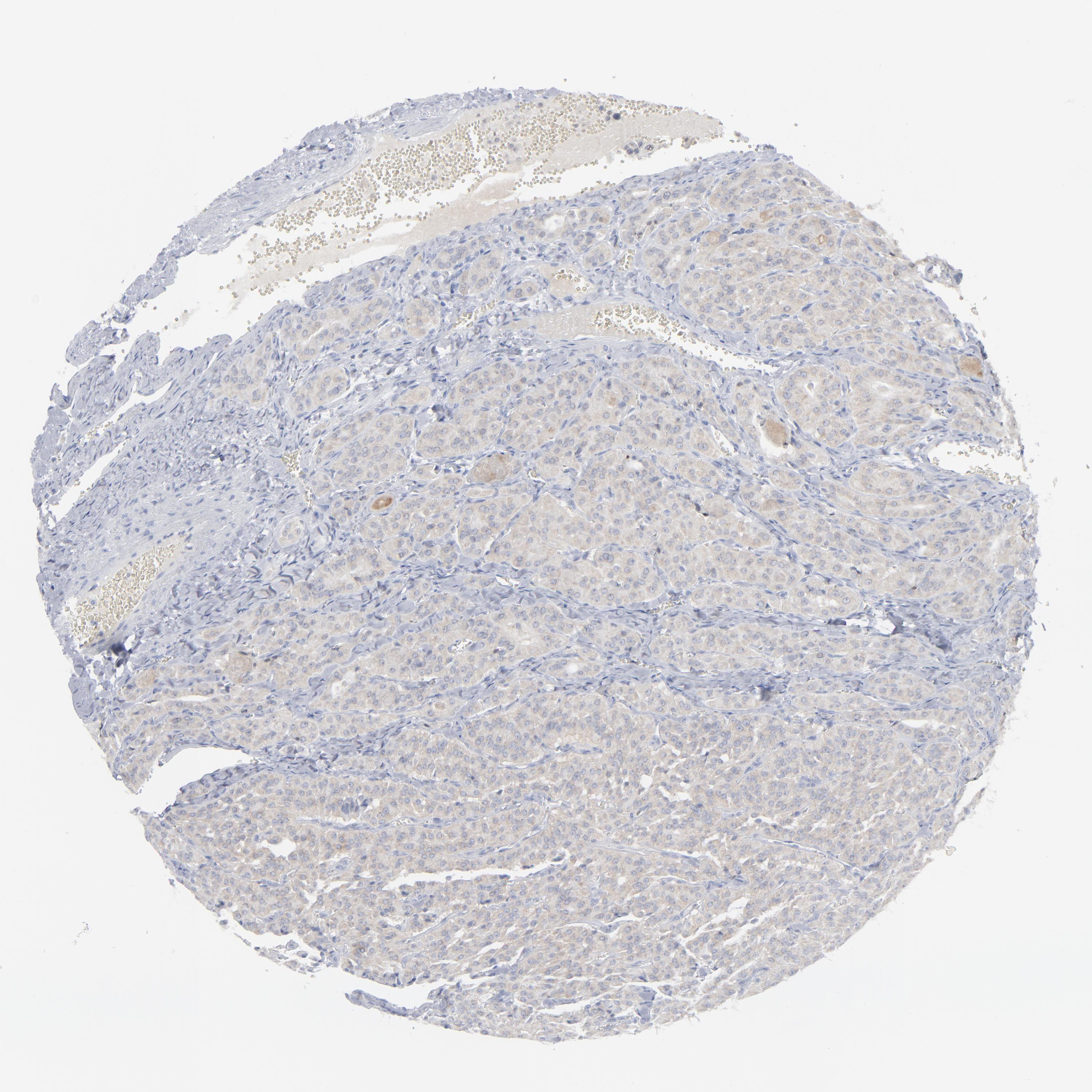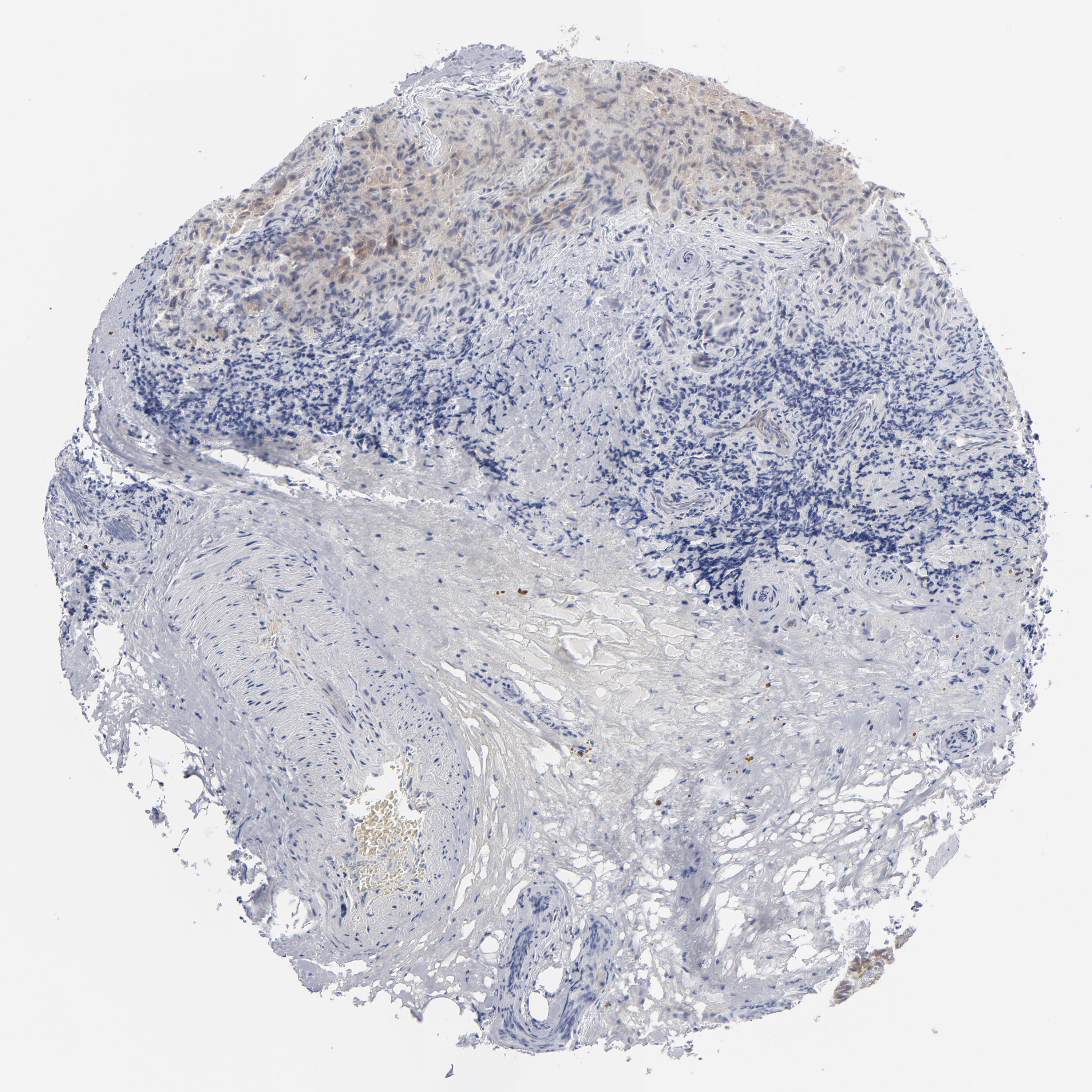 Antibody staining in the annotated cell types in the current human tissue is reported as not detected, low, medium, or high, based on conventional immunohistochemistry profiling in selected tissues. This score is based on the combination of the staining intensity and fraction of stained cells.