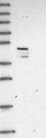A Western blot analysis is performed on a panel of human tissues and cell lines to evaluate antibody specificity. For antibodies with unreliable result a revalidation using an over-expression lysate is performed.