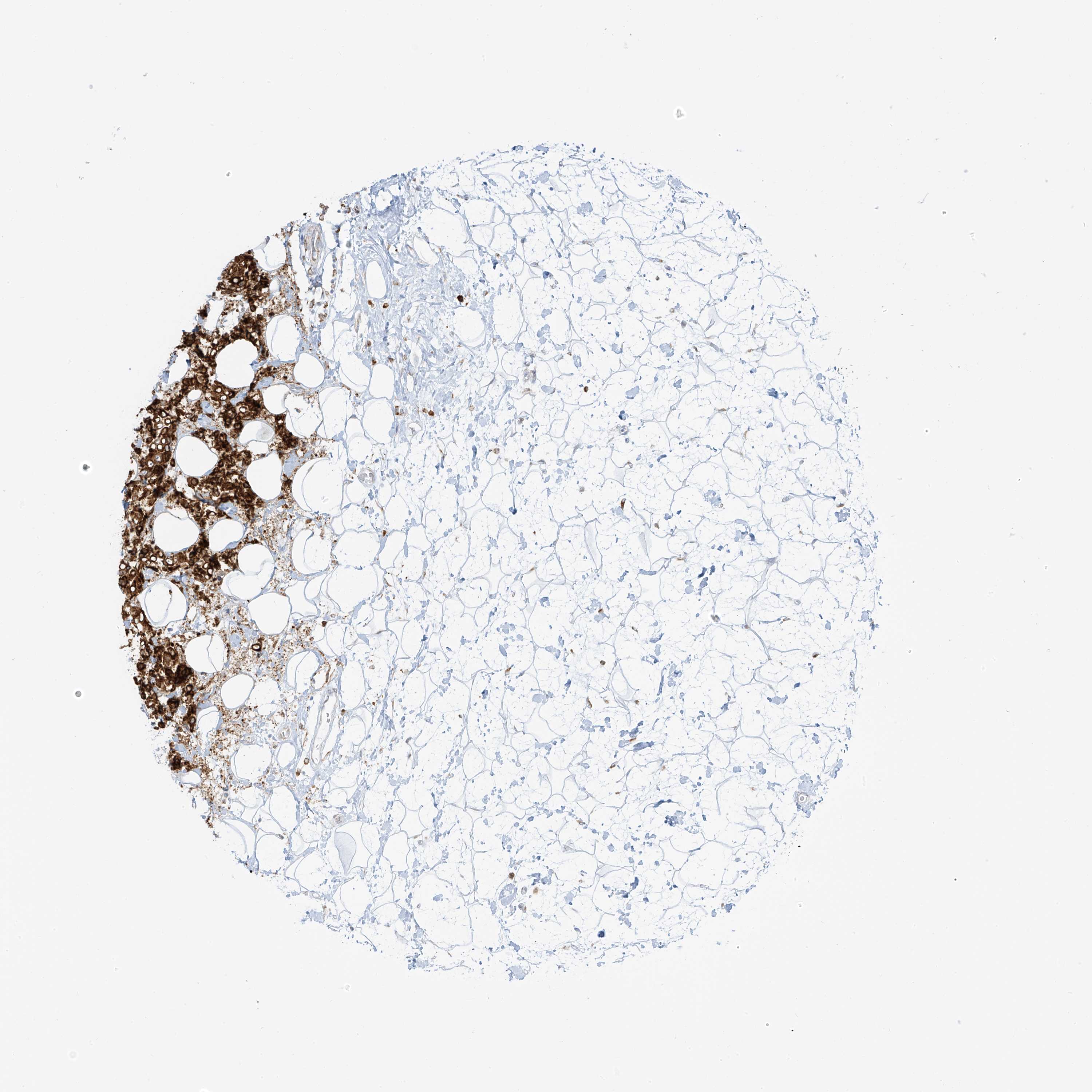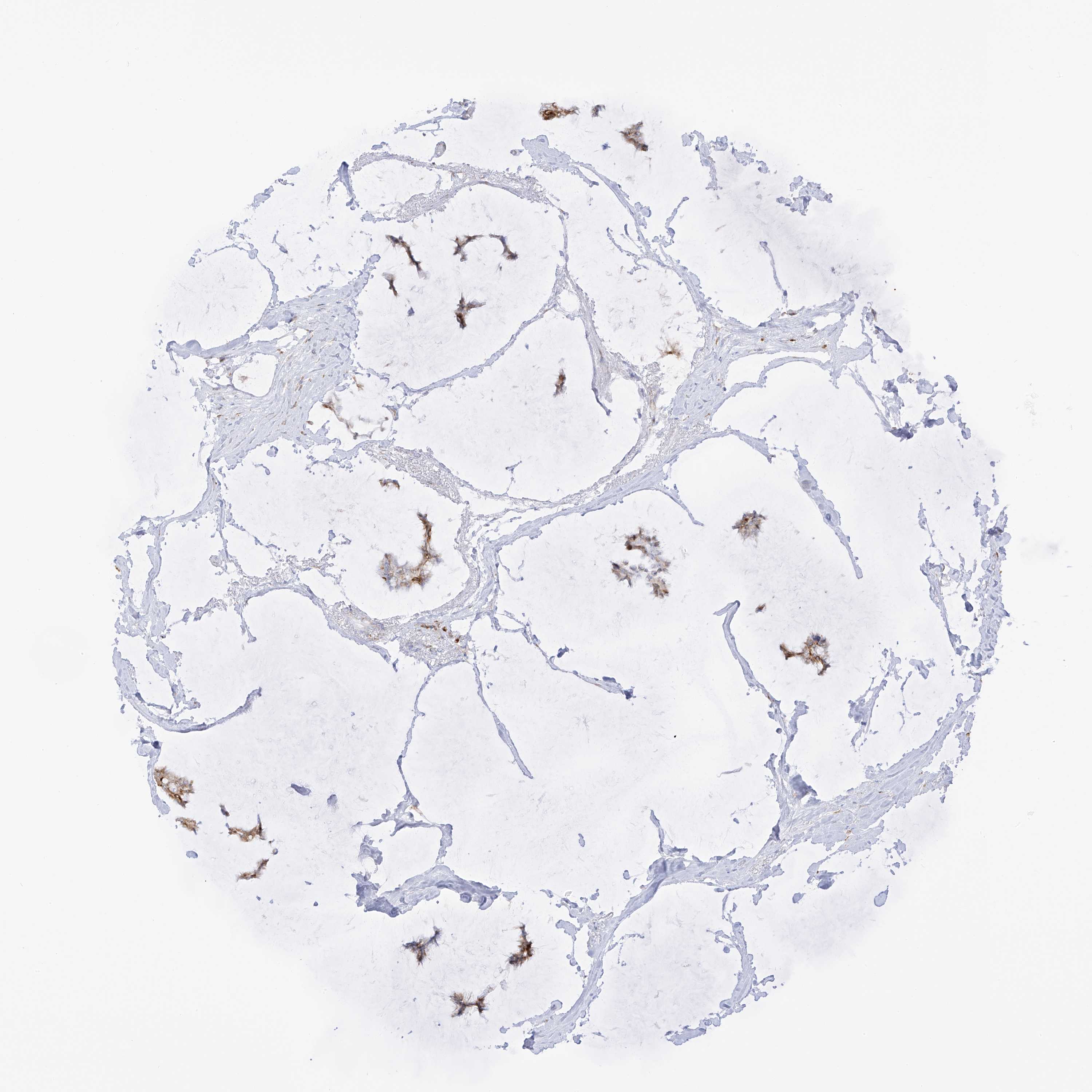 Antibody staining in the annotated cell types in the current human tissue is reported as not detected, low, medium, or high, based on conventional immunohistochemistry profiling in selected tissues. This score is based on the combination of the staining intensity and fraction of stained cells.