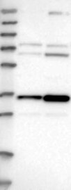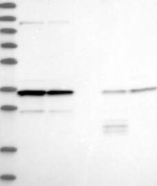 A Western blot analysis is performed on a panel of human tissues and cell lines to evaluate antibody specificity. For antibodies with unreliable result a revalidation using an over-expression lysate is performed.
