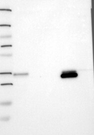 A Western blot analysis is performed on a panel of human tissues and cell lines to evaluate antibody specificity. For antibodies with unreliable result a revalidation using an over-expression lysate is performed.