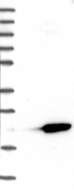 A Western blot analysis is performed on a panel of human tissues and cell lines to evaluate antibody specificity. For antibodies with unreliable result a revalidation using an over-expression lysate is performed.